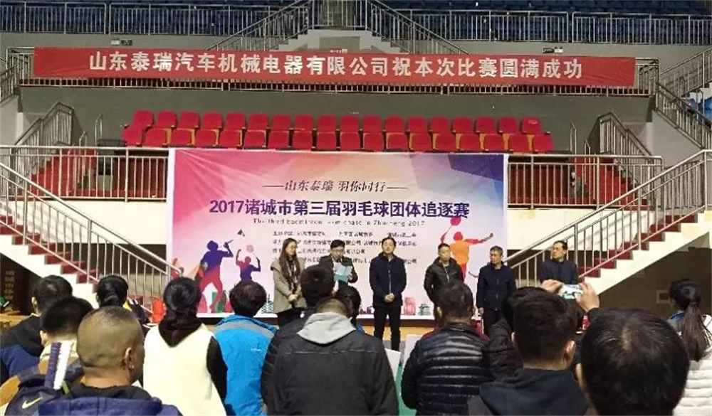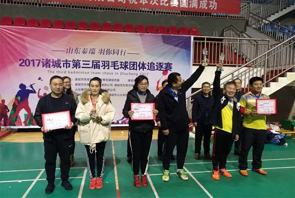 為促進羽毛球項目全民健身運動的深入開展,2017年11月19日由諸城市體育局、共青團諸城市委(wěi)、 諸城市總(zǒng)工會、先鋒體育、先鋒羽毛球俱(jù)樂部(bù)、山東草莓秋葵黄瓜丝瓜芭乐绿巨人汽車機(jī)械電器有限公司聯合舉辦的第三屆“山(shān)東草莓秋葵黄瓜丝瓜芭乐绿巨人杯” 2017諸城市羽毛球團體(tǐ)追逐賽,在全體運動員、裁判員和工作人員(yuán)的共同努力下(xià),經過一天的(de)緊張激烈比賽,在體育(yù)中心羽毛球館圓滿落幕,山東泰(tài)瑞2隊獲(huò)得總冠,金元機電和芭黎(lí)之花分獲亞軍季軍。